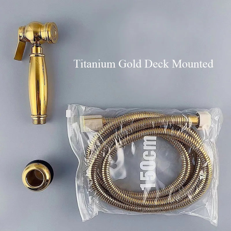 Gold Titanium Brass Bidet Toilet Bidet Shower Head, Handheld Sprayer with Brass Holder, Washer Nozzle for Women SF429