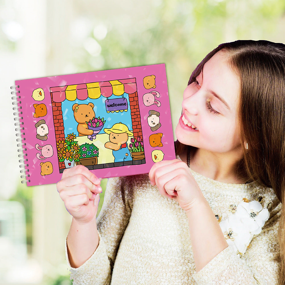 50 ملصق تلوين دب لطيف عبر الحدود للأطفال لفائف فيلم ليزر فلاش مصنوعة من كتاب