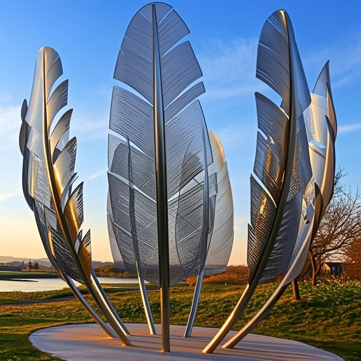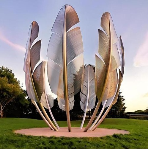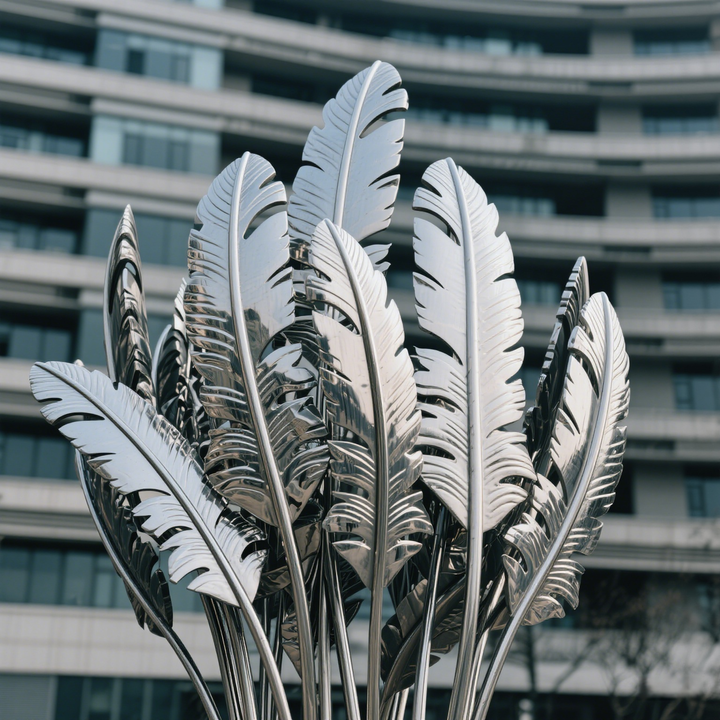 Custom Modern Creative Stainless Steel Living Room Luxury Feather Sculpture Floor Decor Large Office Home Decor