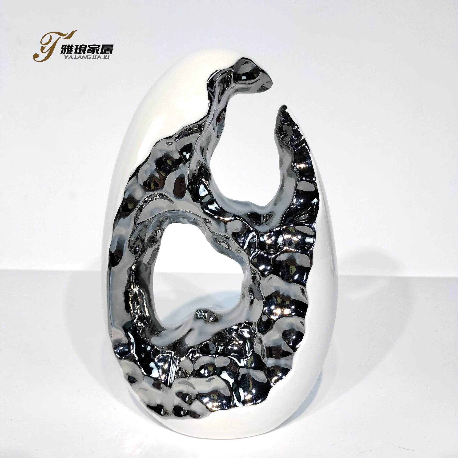 Modern Single Living Room Wedding Interior Decoration Ceramic Silver Egg Shape Luxury Home Decor Accessories