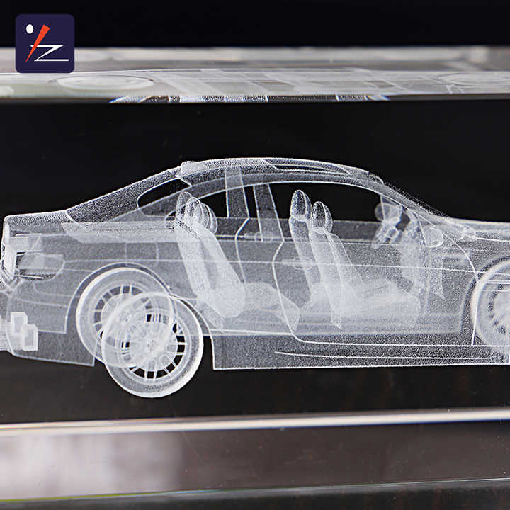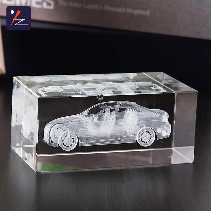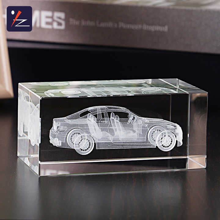 Yuzhou High Quality Home Decor K9 Glass Custom Logo 3D Laser Car
