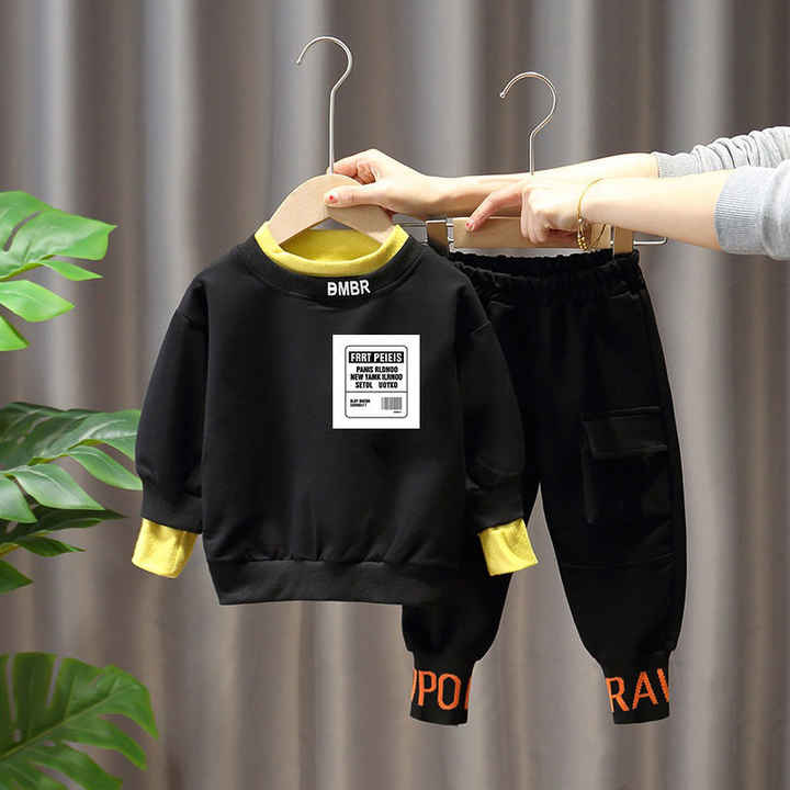 Cheap Baby Boy Winter Clothes Autumn Clothing 2021 2 Pieces Long Sleeve Letter Embroidery Cartoon Little Boys Clothes