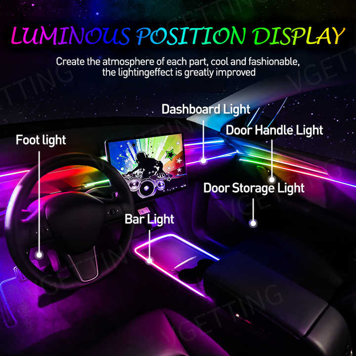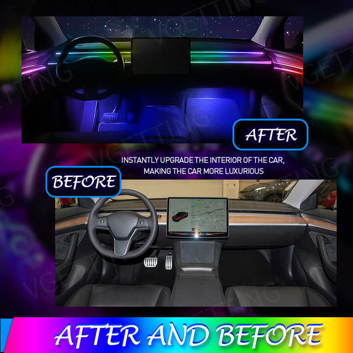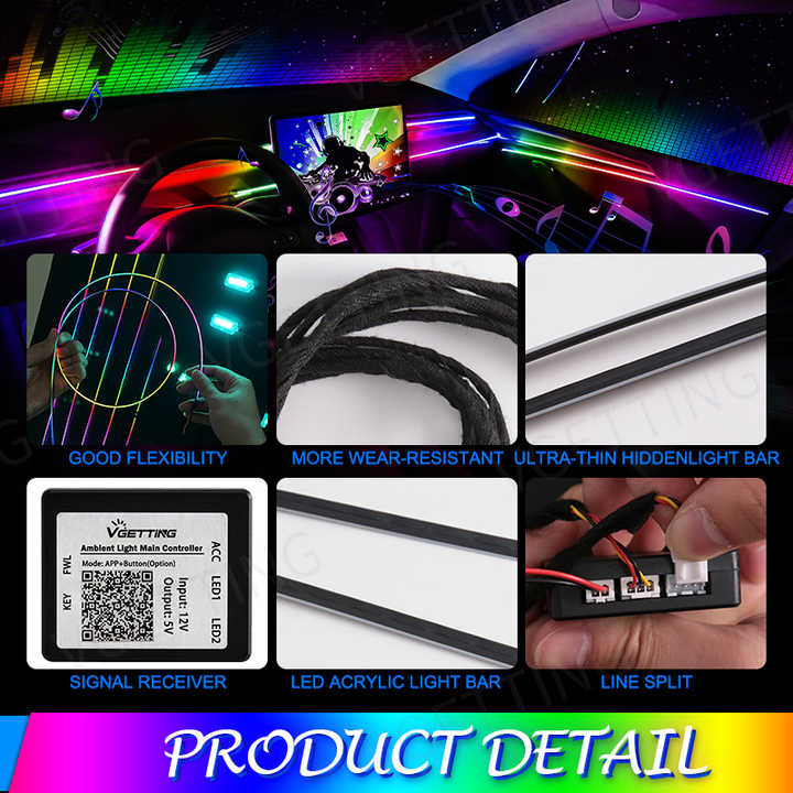 in1 Music Ambient Light Washer Car Interior Accessories Dual Zone RGB 64 Neon LED Strip Acrylic Atmosphere Lamp Car Decor
