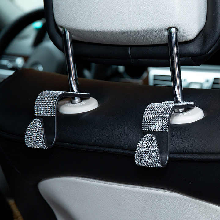 Car Back Seat Holder, Diamond Car Seat Back Hook Bling Rhinestone Hanger Universal Auto Headrest Mount Storage Holder Interior Accessories for Girls
