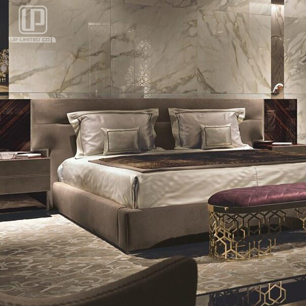 تصميم جديد الايطالية أطقم أثاث غرف النوم الفاخرة الملك الحجم سرير بلا أرجل الحديثة النسيج تنجيد سرير فاخر
