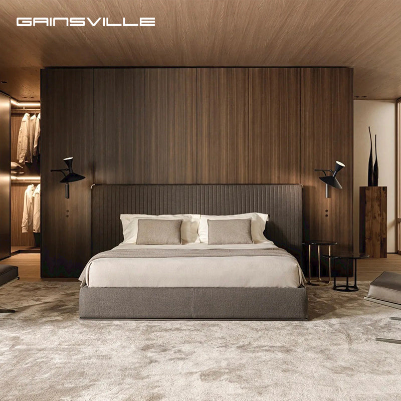 سرير غينزفيل العصري المصمم بتنجيد فاخر مع لوح رأس مطرز عمودياً | إطار سرير فاخر بتصميم بسيط وناعم