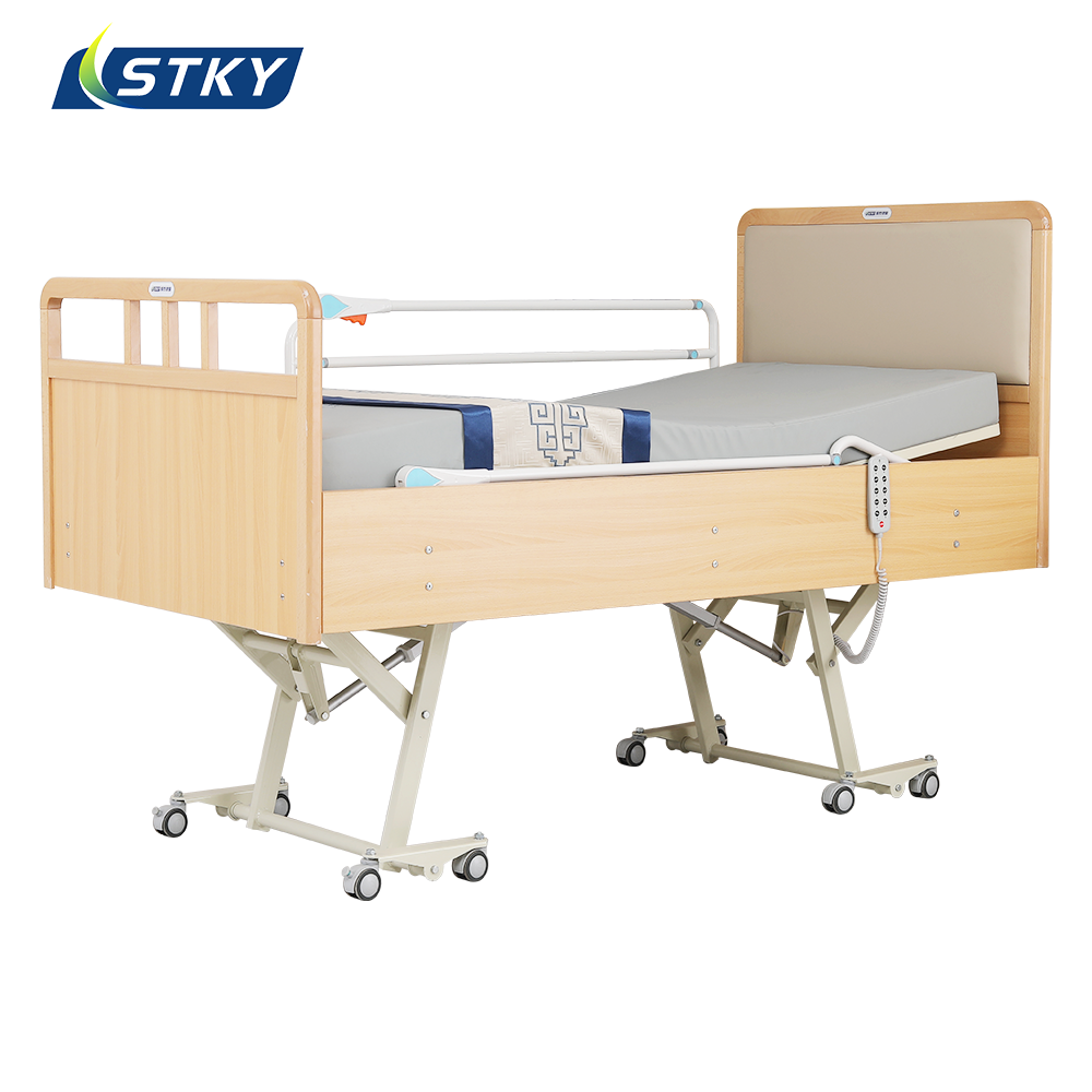 من الشركة المصنعة للمعدات الأصلية ODM سرير رعاية منزلية كهربائي بخمس وظائف مع لوح أمامي خشبي