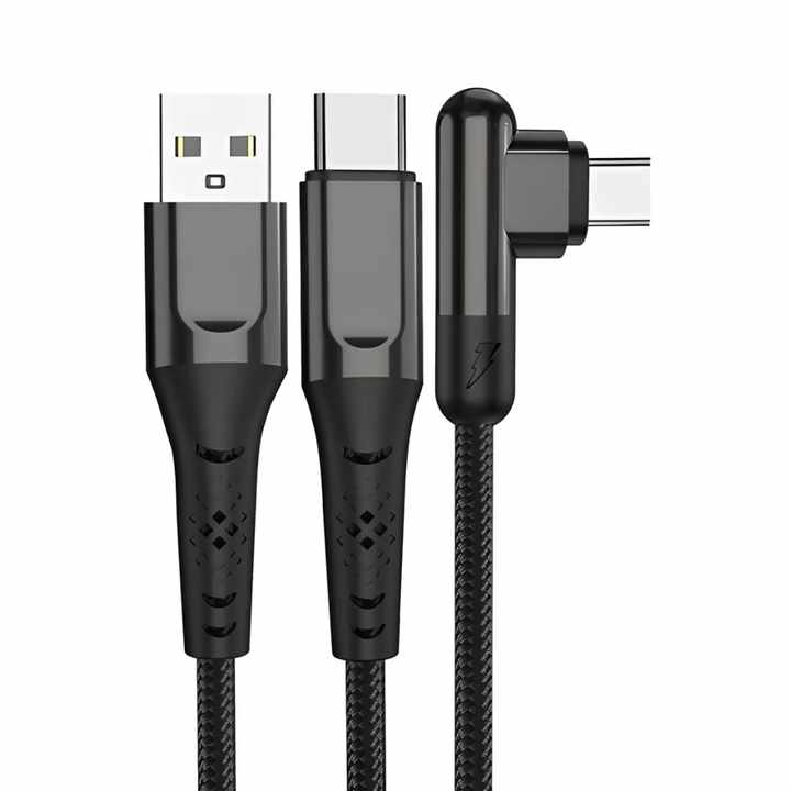 Lux Durable Nylon Fast Charging Type-C to C Data Cable 90 Degree Right Angle for iPhone 14 15 16 / Tablet / Computer
