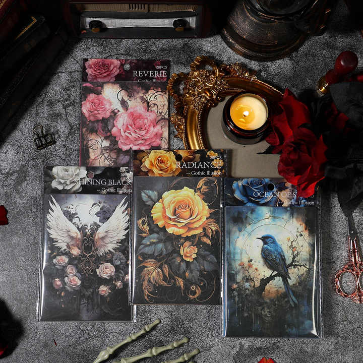 20pcs/pack Gothic Fantasy Series American Retro Handbook Material Paper Handbook Collage Flower DIY