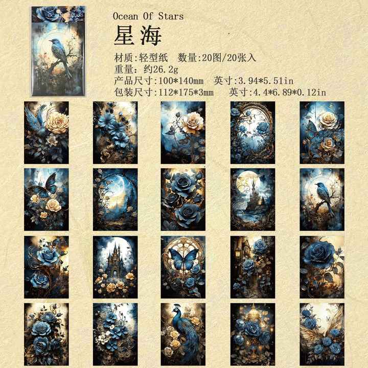 20pcs/pack American Gothic Fantasy Series Retro Paper Material Booklet DIY Flower Collage Booklet