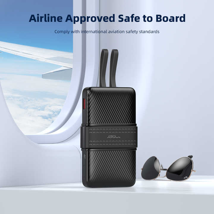 Vyvylabs Portable Charger, Power Bank, 10000mAh, 20W, Essential Travel Battery, with Built-in C+L Cables