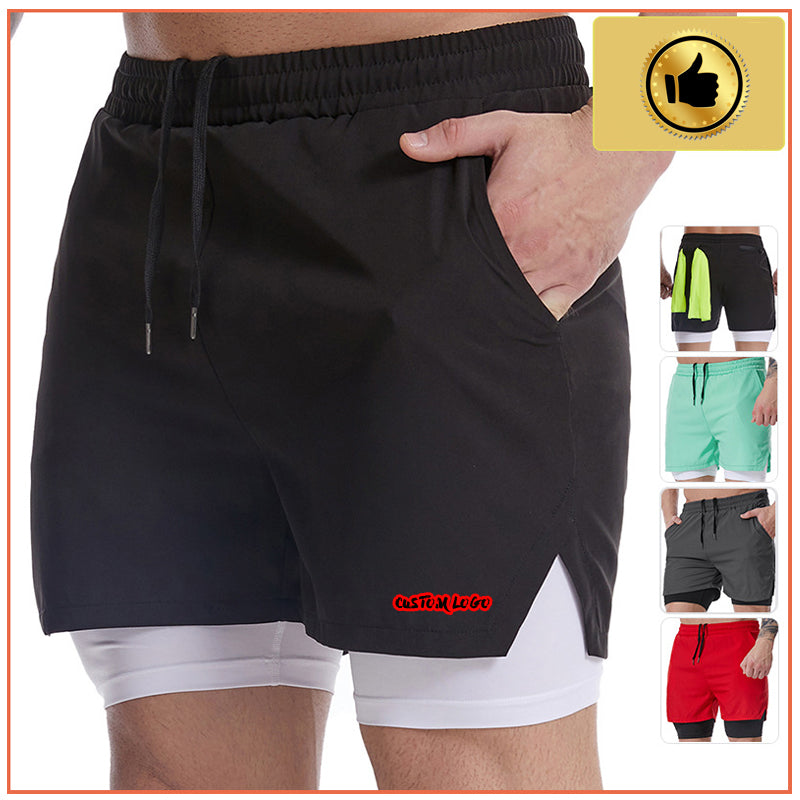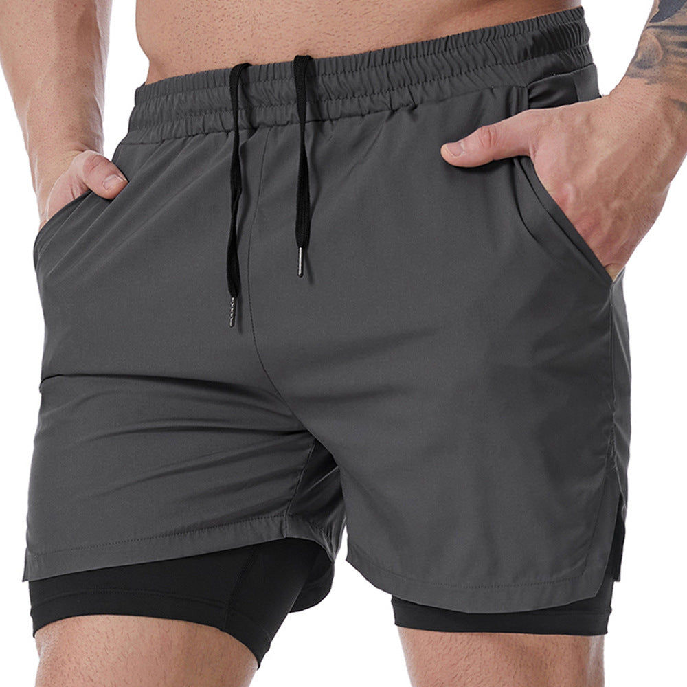 شورت رياضي رجالي 2 في 1 بطول 5 بوصات سريع الجفاف مع جيوب للهاتف، شورت تدريب رياضي للرجال