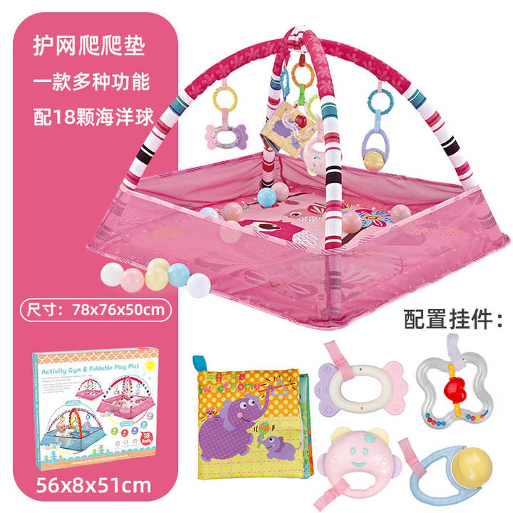 High Quality Canvas Baby Gym with Fence and Ball Pit Kids Cotton Play Mat with 18 Ocean Balls