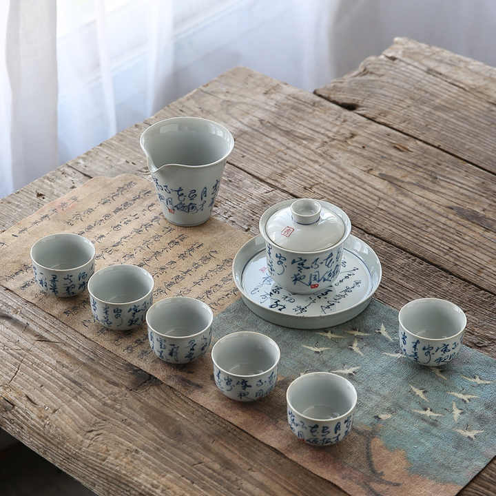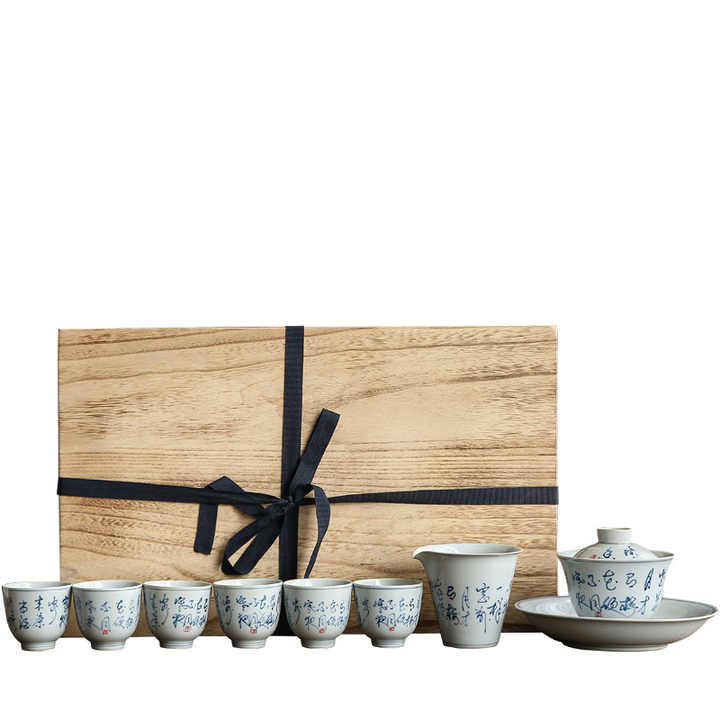 Handwritten Wooden Box Cold Night Poem Kung Fu Tea Set Small Tea Cup Hand Painted Gaiwan Tea Set Ceramics Business Gifts