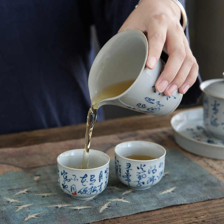 Wooden Box Handwritten Cold Night Poetry Kung Fu Tea Set Small Tea Cup Hand Drawn Teaware Sets Ceramic Gaiwan Business Gifts
