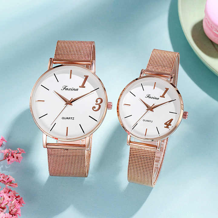 Hot Sale Valentine's Day Luxury Romantic Rose Shape Gift Box for Lovers 2 Pieces 1314 Couple Quartz Watch Set Beloved Uhren Orologi for Lovers