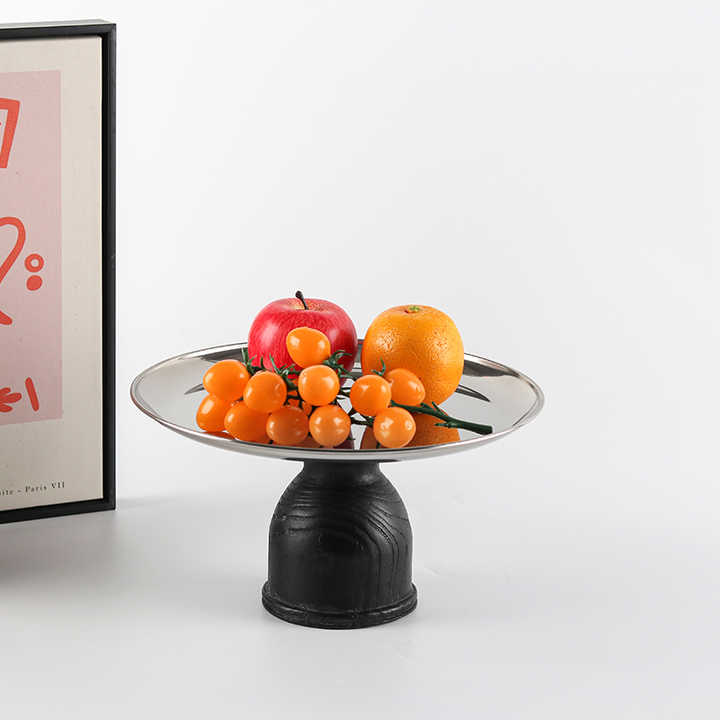 Luxury Black Metal Serving Tray Custom Size with Irregular Fruit Chocolate Design Resin Table Decor for Home Food Use