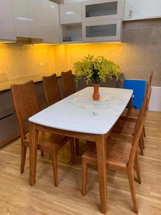 Best Quality Cafe Dining Table and Chair Set Solid Wooden Metal Leg Design for 6 Seats Chairs for Home Furniture