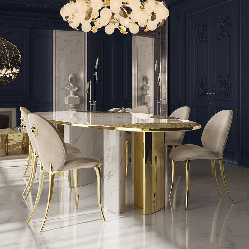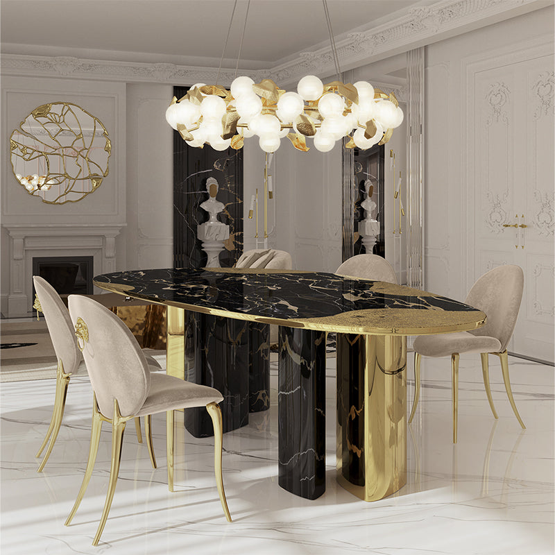 طاولة طعام إيطالية فاخرة بتصميم خاص، طاولة رخامية إبداعية عصرية راقية للفيلات الفخمة