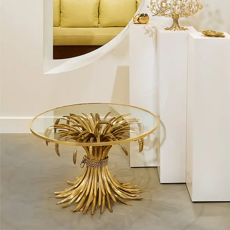 طاولة مستديرة فاخرة بتصميم سنابل القمح، طاولة طعام إبداعية من الفولاذ المقاوم للصدأ مع زخارف نحاسية، طاولة للتفاوض والاستقبال