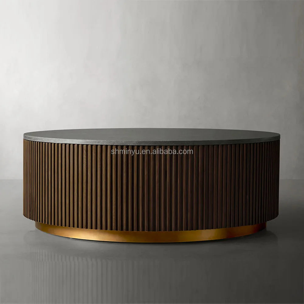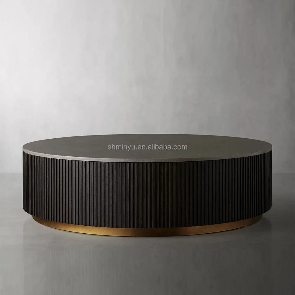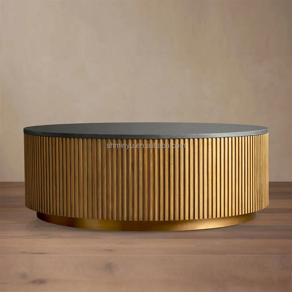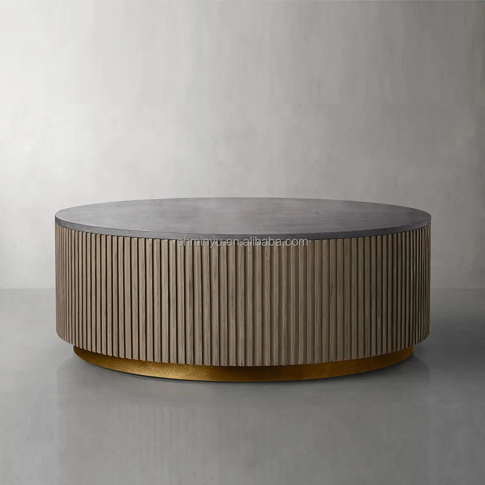 طاولة قهوة رخامية دائرية عصرية لغرفة المعيشة، مصنوعة من خشب البلوط الصلب والراتان، بتصميم اسكندنافي عتيق، أثاث منزلي