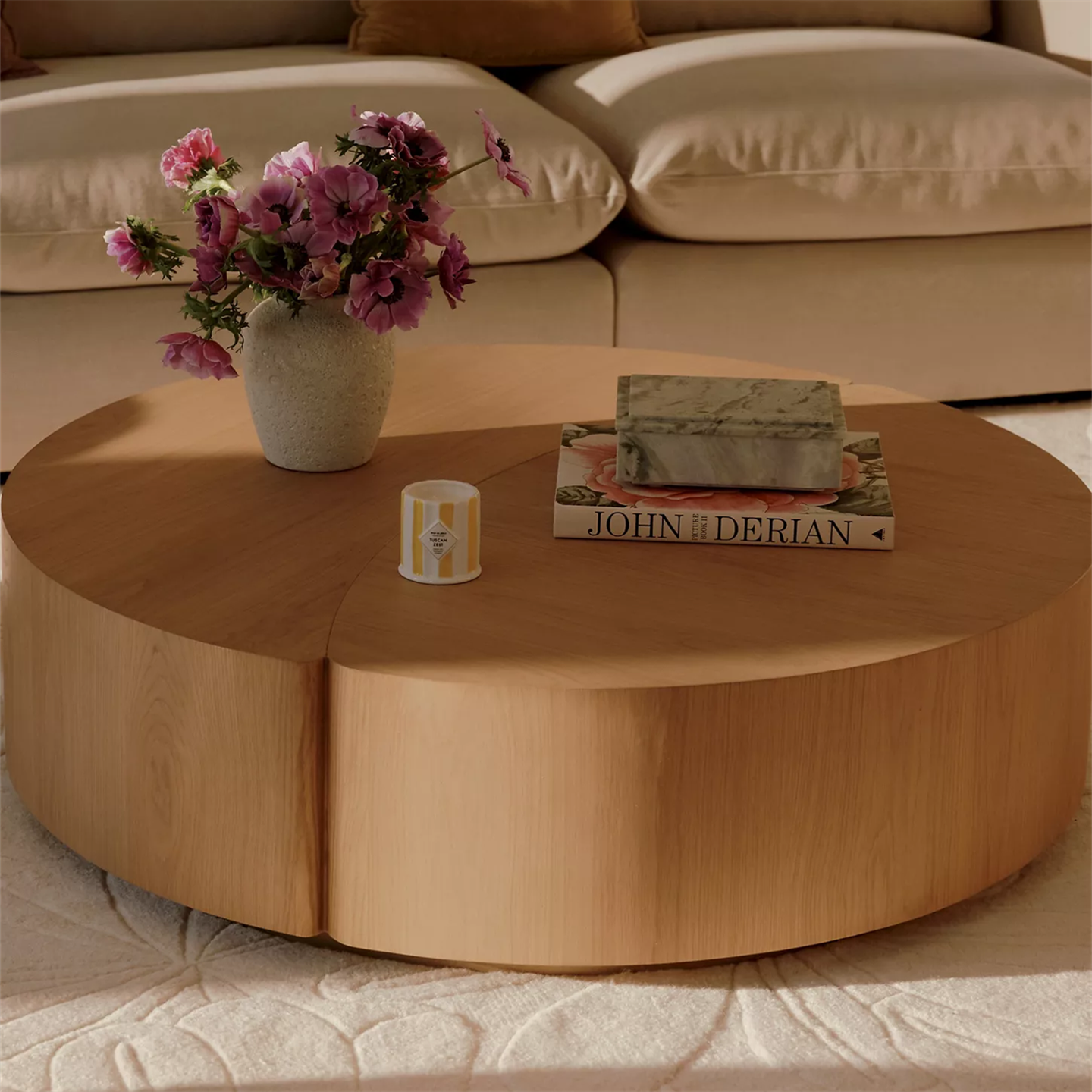 طاولة قهوة دائرية عصرية بتصميم خشبي بسيط على طراز المزرعة، طاولة جانبية لغرفة المعيشة أو البار المنزلي