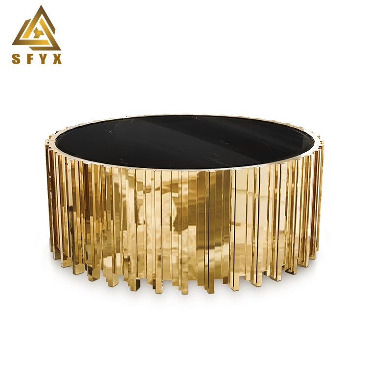 طاولة قهوة مستديرة منزلية فاخرة حديثة مزروعة بالذهب من النحاس الأصفر