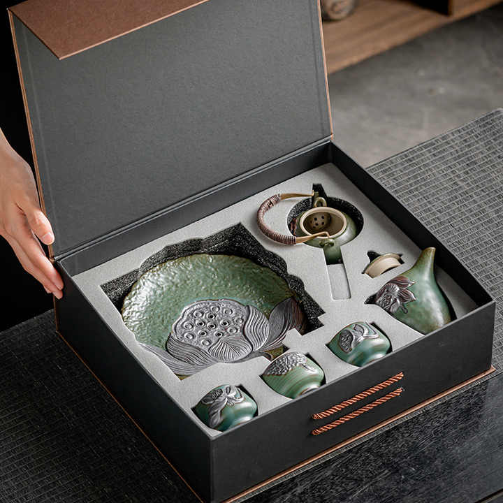 Retro Kung Fu Design Pottery Teapot Set, Sustainable Ceramic Tea Set for Coffee, Drinks, Festivals, Gifts