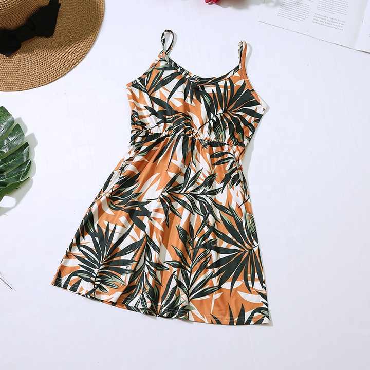 Factory Wholesale Women's Summer Floral Print Dresses, Family Matching Dresses, Mother and Child Clothes