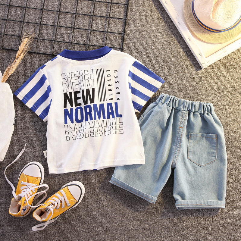 طقم ملابس صيفي للأطفال الأولاد، طقم مكون من قطعتين بأكمام قصيرة، أنيق ورائع