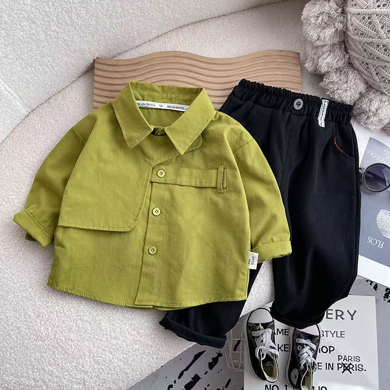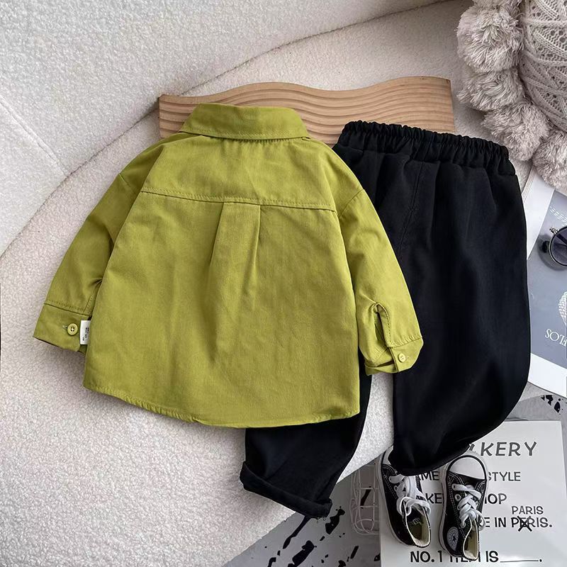 طقم ملابس أولادي على الطراز الكوري الجديد للأعمار من 1 إلى 5 سنوات، ملابس أطفال سادة لفصلي الربيع والخريف
