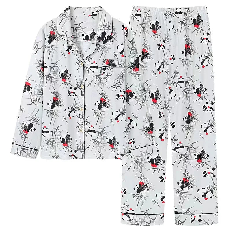 طقم بيجامة نسائي كاجوال للمقاسات الكبيرة لفصل الخريف بأكمام طويلة وياقة مطوية من قماش الجيرسيه للمنزل