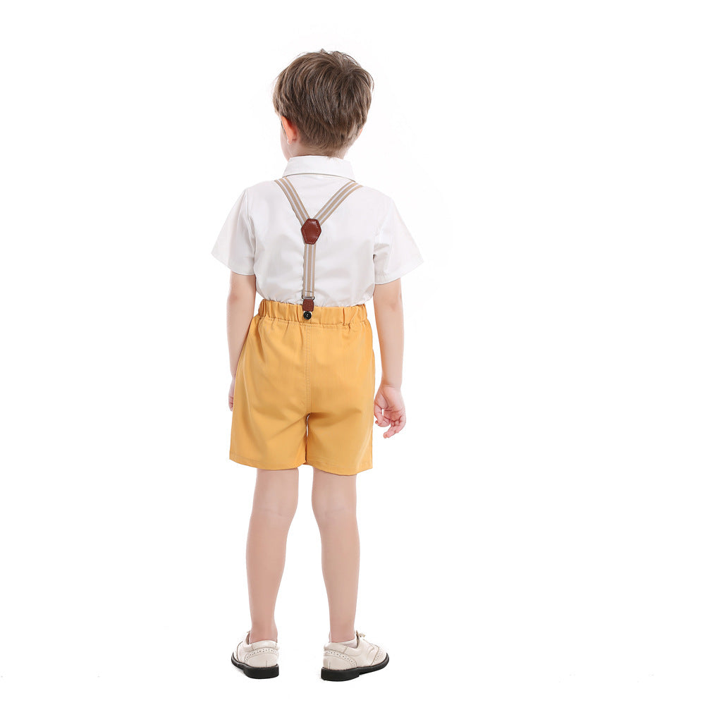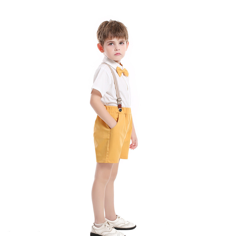 طقم صبياني صيفي عالي الجودة, طقم صبياني صيفي عالي الجودة من القطن ، طقم ملابس أبيض ، قميص أصفر ، شورت ، للأولاد ، ملابس أطفال ، قماش ناعم ، ملابس أطفال