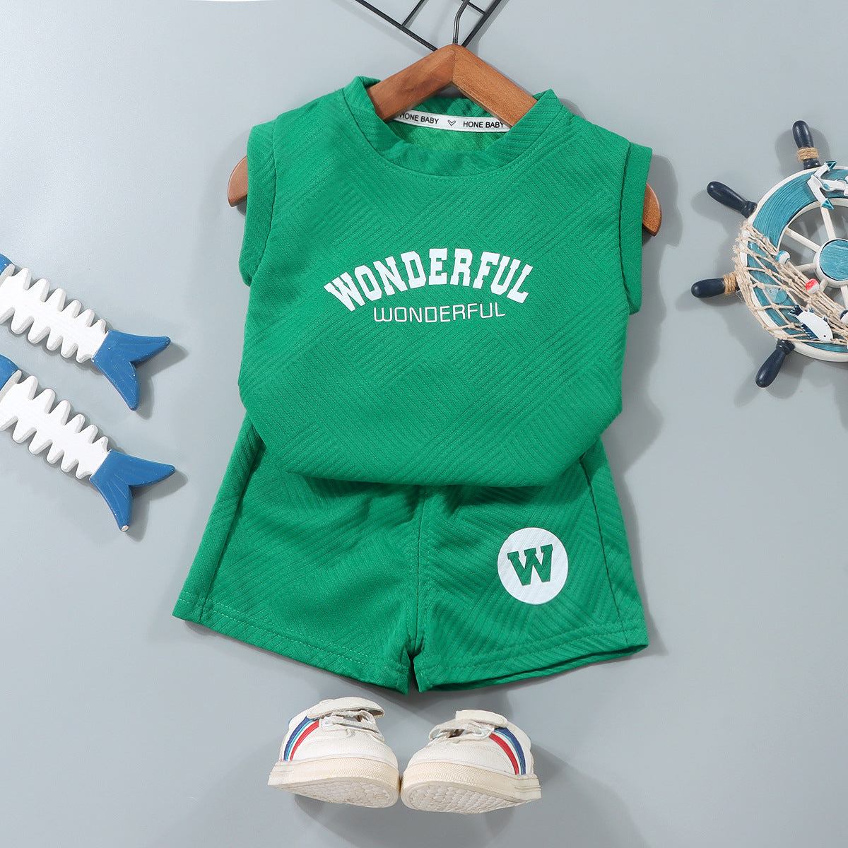 طقم صيفي بدون أكمام للأولاد مشهور على الإنترنت، ملابس أطفال عصرية جديدة بمقاسات متوسطة وكبيرة