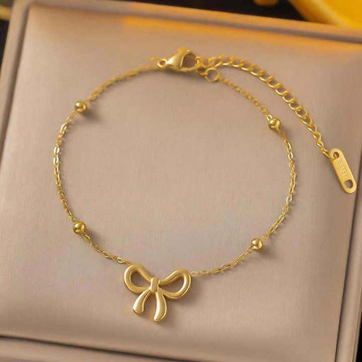Women's Stainless Steel Bowknot Necklace, Earrings and Bracelet Set, Exquisite Gold Plated Bowknot Knot Jewelry Set, Fashion Jewelry