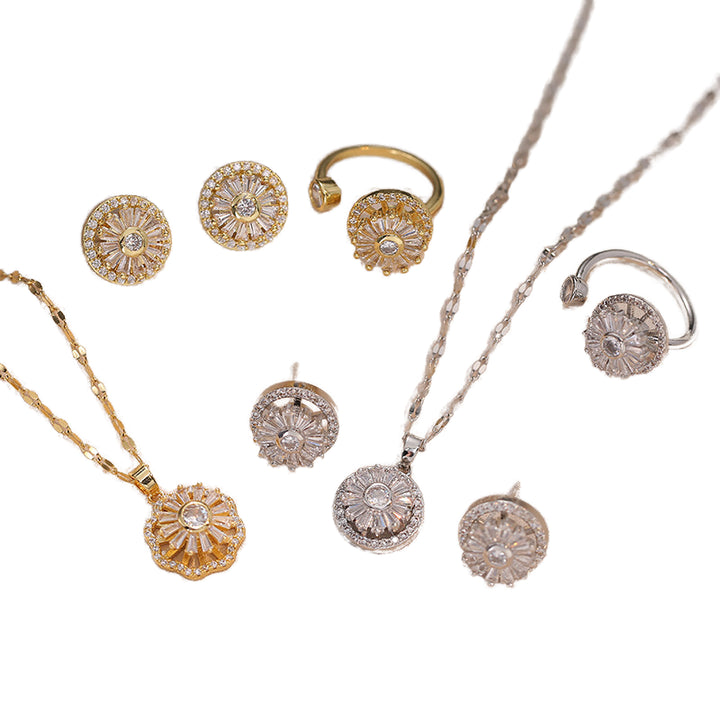 Wholesale Women's Stainless Steel Necklace, Earrings and Ring Set with Rotating Crystal Rhinestones for Wedding