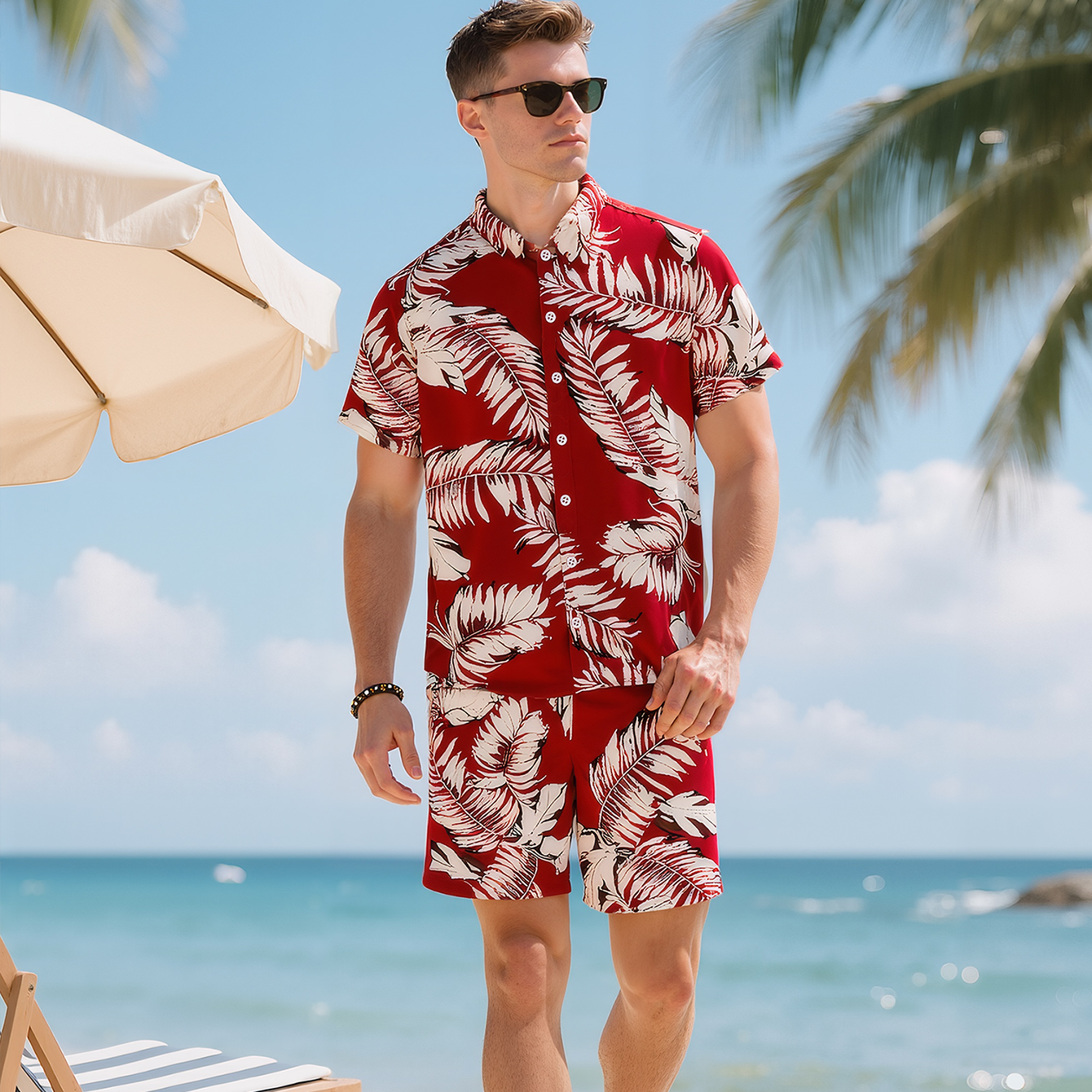 طقم قميص صيفي مطبوع بالزهور وشورت شاطئ للرجال من Bomery، ملابس كاجوال للخارج بتصميم ياقة مستوحى من الأزياء الهاواية
