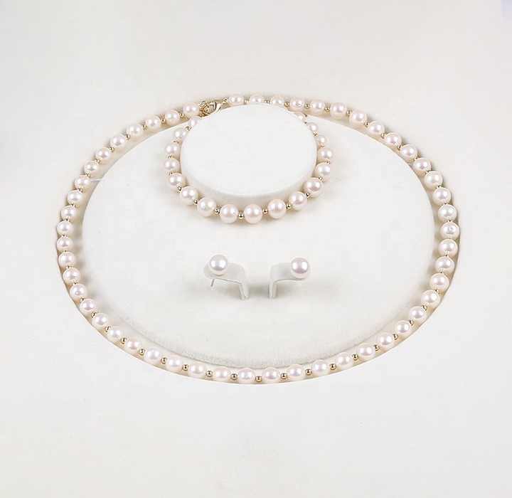 White Round Pearl Necklace Bracelet and Earring New Design Freshwater Pearl Jewelry Sets Body Jewelry