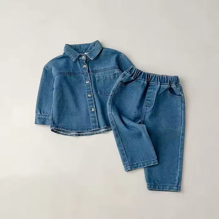 New Korean Boys and Girls Autumn 2 Piece Set Denim Suits Long Sleeve Shirt and Jeans