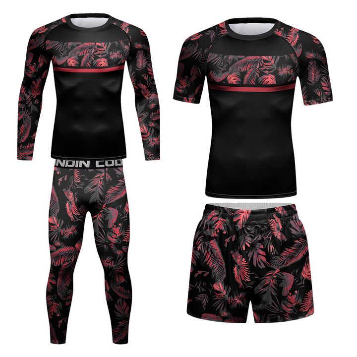 Men's 4-Piece Quick-Drying Breathable Polyester Sportswear Set, T-Shirt, Shorts, Leggings