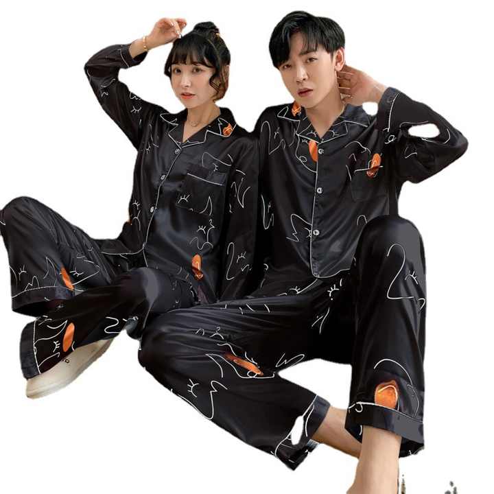 New Design Home Clothes Long Sleeve Silk Pajamas Couple Lovers Sleepwear Men Women