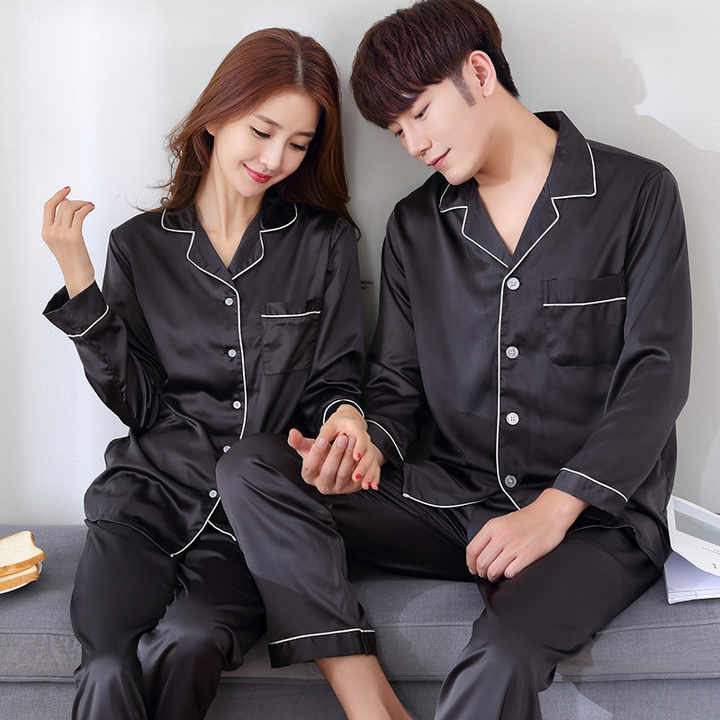 Pajama Set for Honeymoon Sleep Suit Men Sleepwear Silk Women Pajamas
