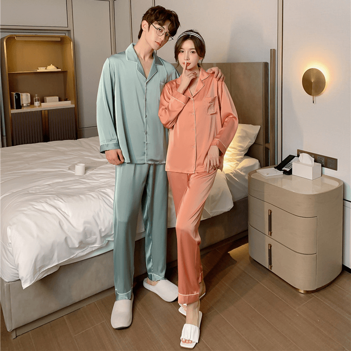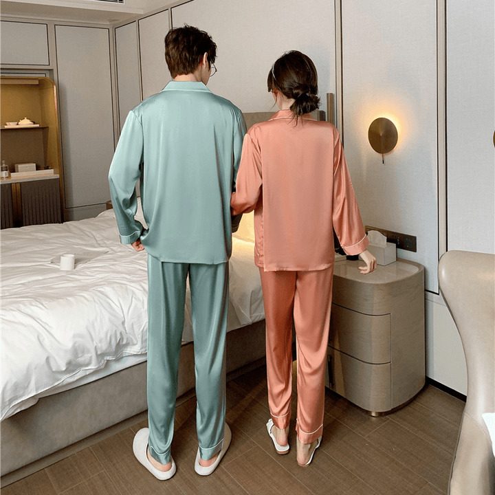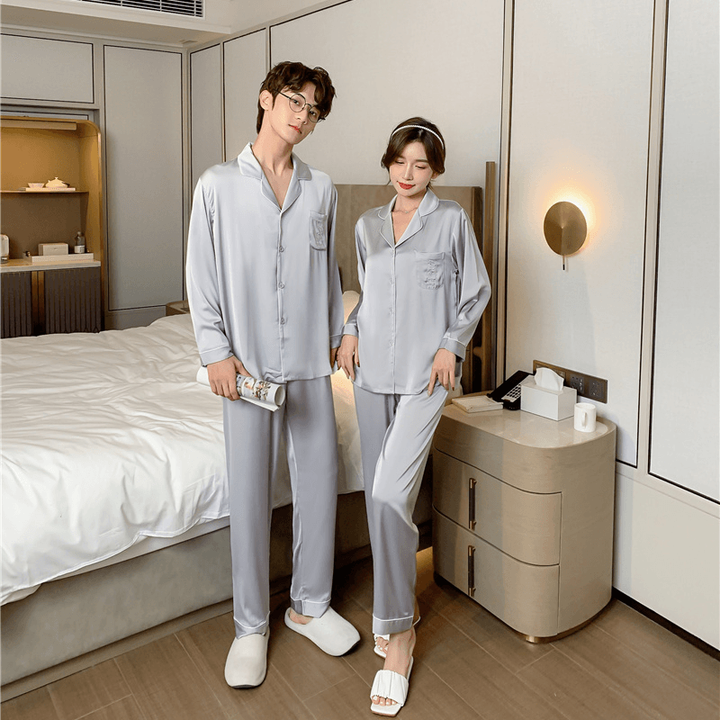 New Spring and Autumn Long Sleeve Couples Pants Women's Ice Silk Pajamas Men's Sleepwear Women's Homewear