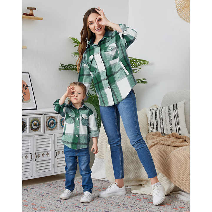 Mommy and Me Clothes 2024 Women Plaid Jacket Kids Coat Mother Daughter Jacket Family Matching Outfits