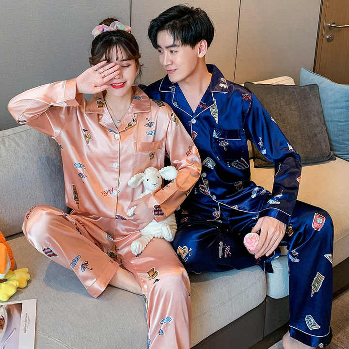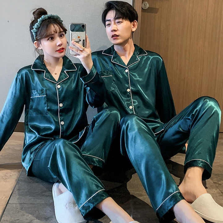 New Luxury Satin Pajama Set Couple Sleepwear Family Pajamas Lovers Night Suit Men Women Casual Homewear