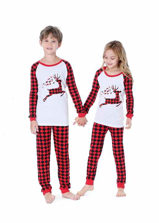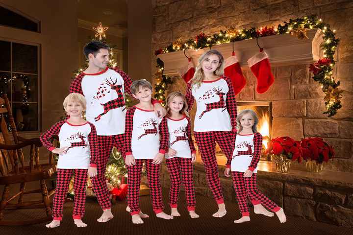 Newest Kids Christmas Homewear 2 Pieces Top and Pants Plaid Cotton Pajamas for Boys and Girls Family Matching Outfits