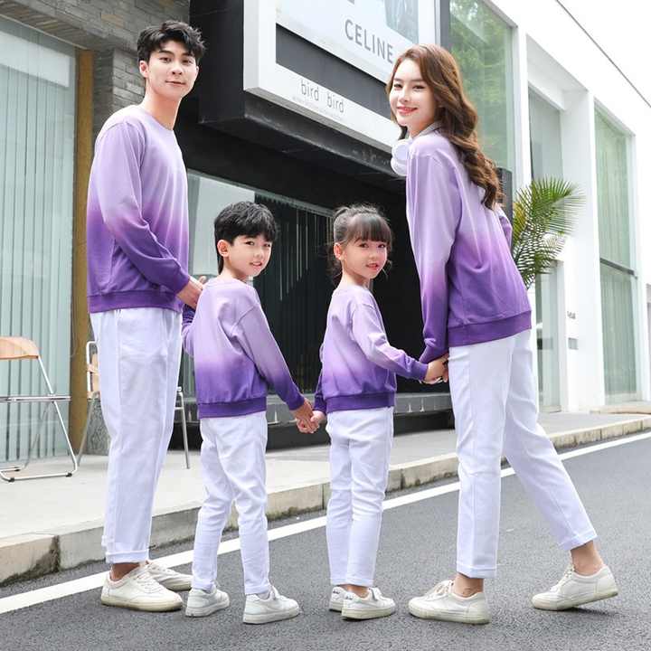 Family Matching Outfits Set Cotton Colorful Long Sleeve Blouse Daily Wear Tops Shirt Sets