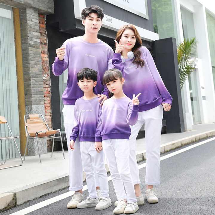 Family Matching Outfits Set Colorful Cotton Long Sleeve Blouse Daily Wear Tops Shirt Sets