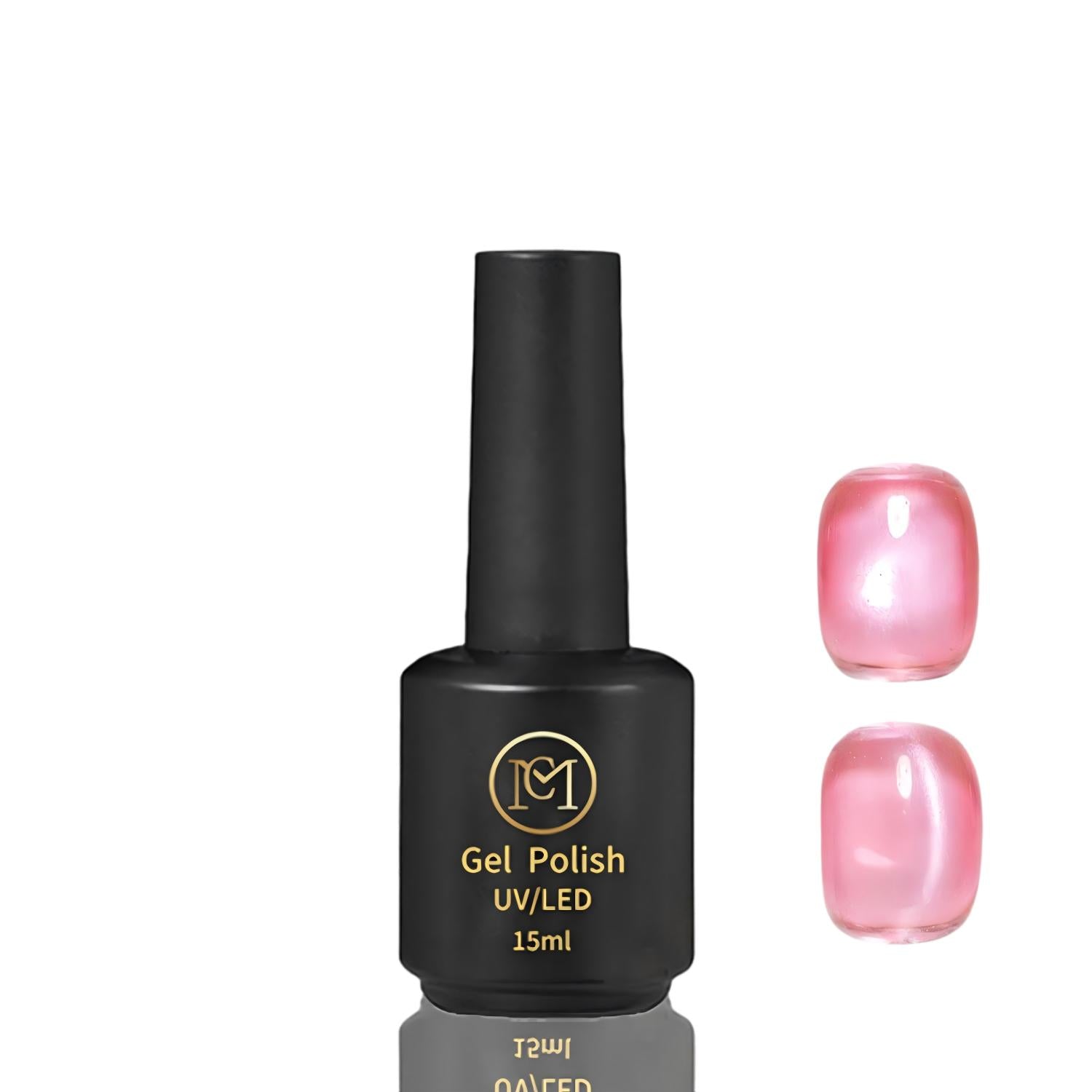 طلاء أظافر جيل لعين القط الوردي 15 مع تأثير حبة زجاجية لامعة مغناطيسية