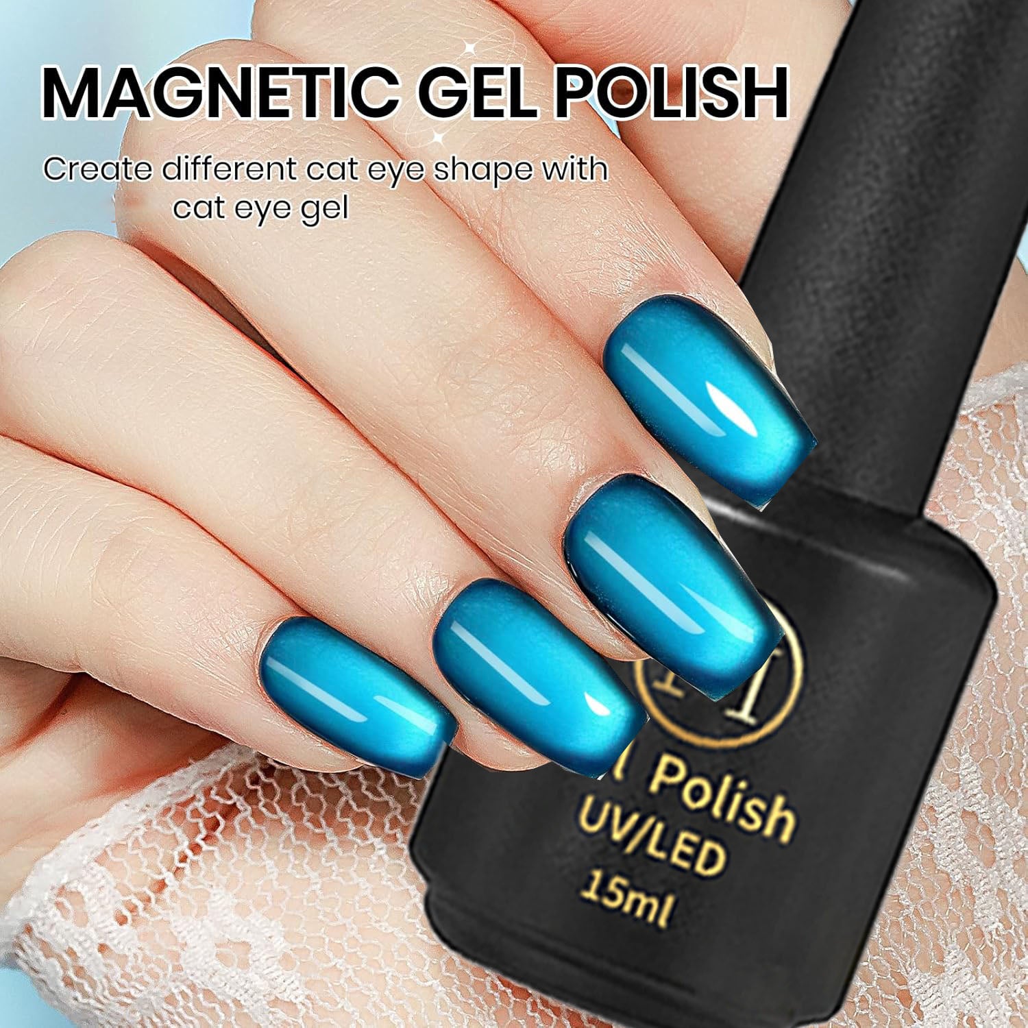 طلاء أظافر جل أزرق لعيون الطاووس ، 15 جل من الجيلي الزجاجي لتأثير لامع لامع مغناطيسي لصالونات التجميل تصنعه بنفسك في المنزل